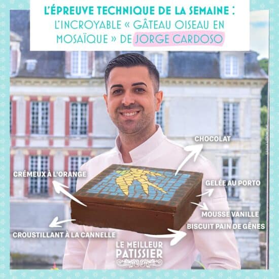 Le chef portugais Jorge Cardoso bouleverse les habitudes avec son GÂTEAU oiseau en mosaïque. Cette création technique demande une précision chirurgicale dans l'assemblage des différentes couches. 🎨