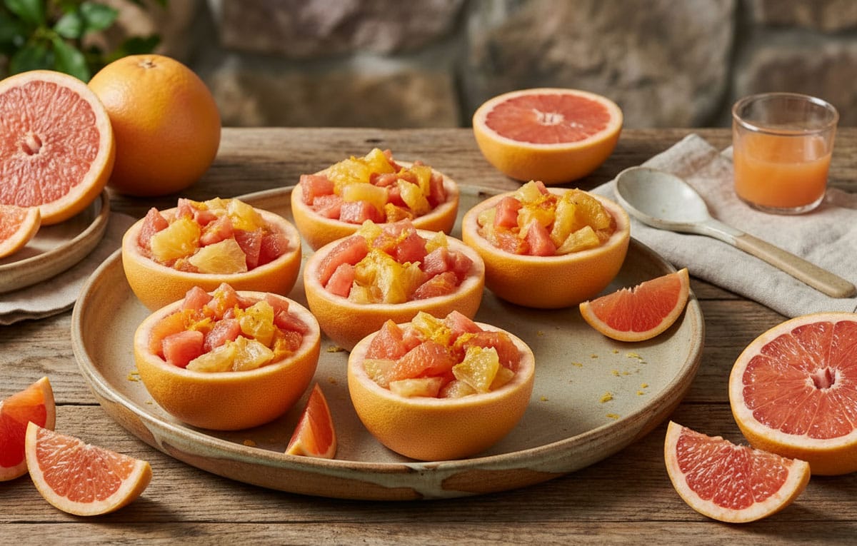 Les pamplemousses à la californienne m'ont toujours évoqué ces brunchs ensoleillés des années cinquante, où l'on servait les agrumes dans leurs propres coques, comme de petits bols naturels… Une présentation qui me fait penser à ces salades californiennes où pamplemousse, avocat et crevettes se rencontrent joyeusement ! Mais ici, on parle d'un dessert rafraîchissant, tout en élégance, où le pamplemousse devient l'écrin de fruits gorgés de soleil – oranges, melon – le tout parfumé au curaçao et au marasquin. Une recette qui fleure bon la Californie des années dorées, quand on savait transformer les agrumes en véritables bijoux culinaires ! Alors, si vous cherchez un dessert léger, coloré et parfumé pour terminer un repas sur une note fraîche… suivez-moi dans cette escapade fruitée !